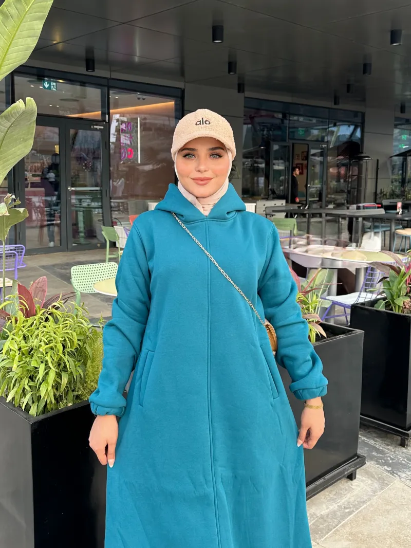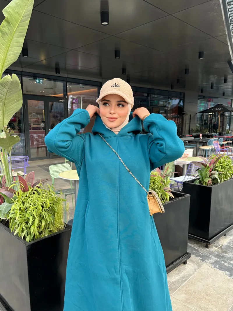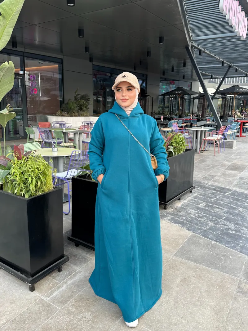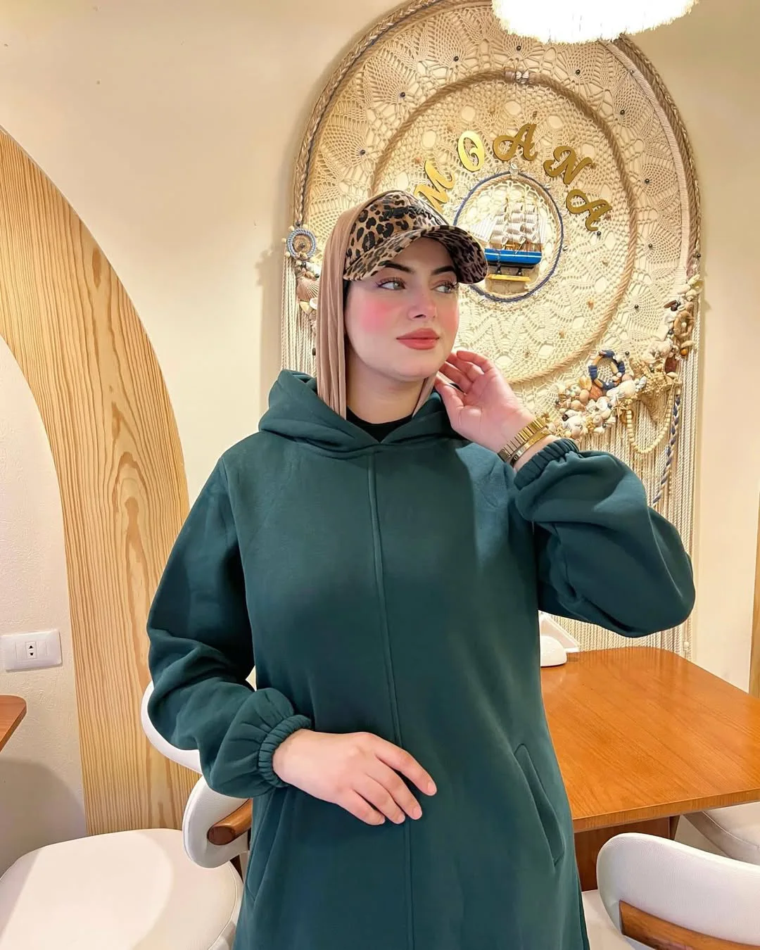هودي طويل بأكمام طويلة من لافيا فاشون بالوان متنوعة، تصميم عملي ومريح يناسب الإطلالات اليومية والمشاوير السريعة. خامة ثقيلة وناعمة توفر الدفء في الشتاء مع لمسة من الأناقة البسيطة. مزود بجيب أمامي وكابيشو لإطلالة كاجوال محتشمة تناسب المحجبات. متوفر بألوان متعددة تناسب جميع الأذواق.