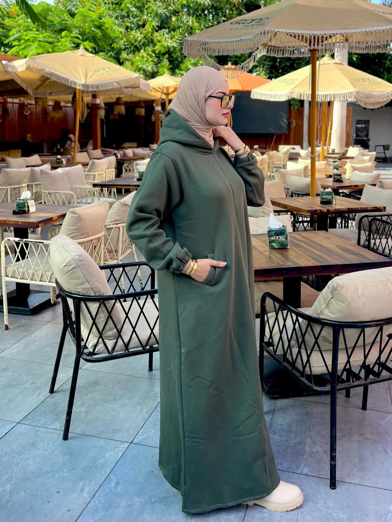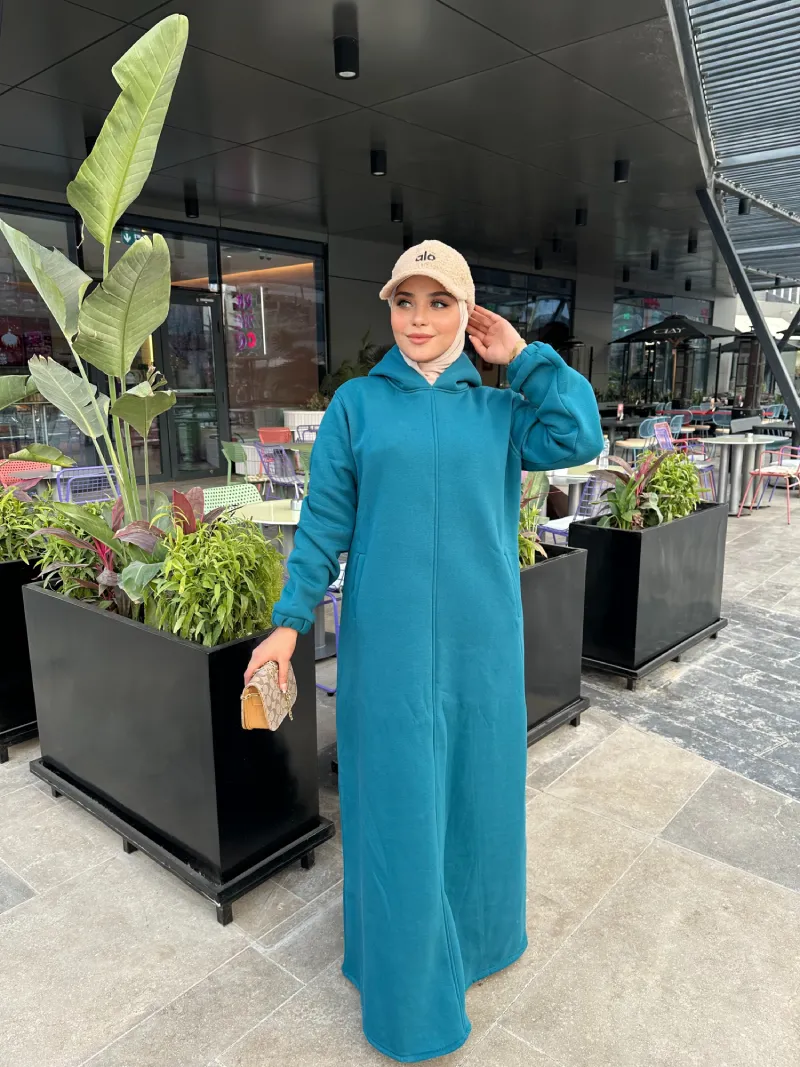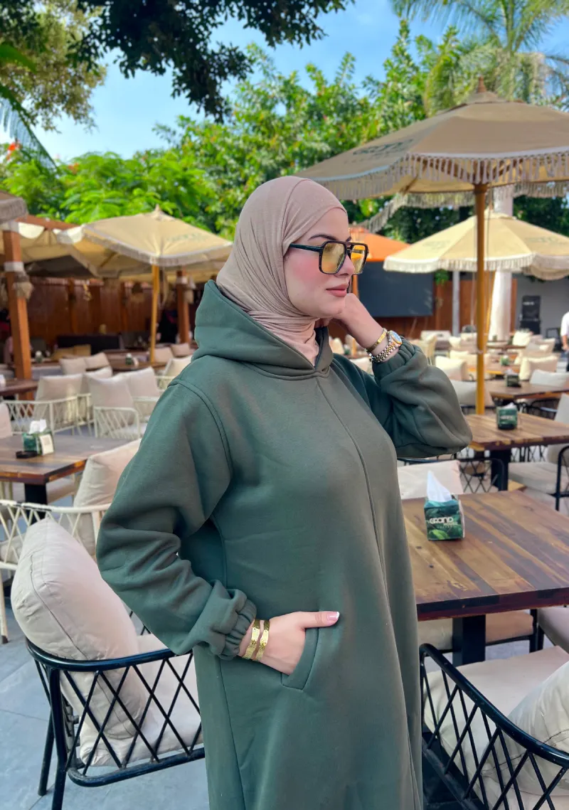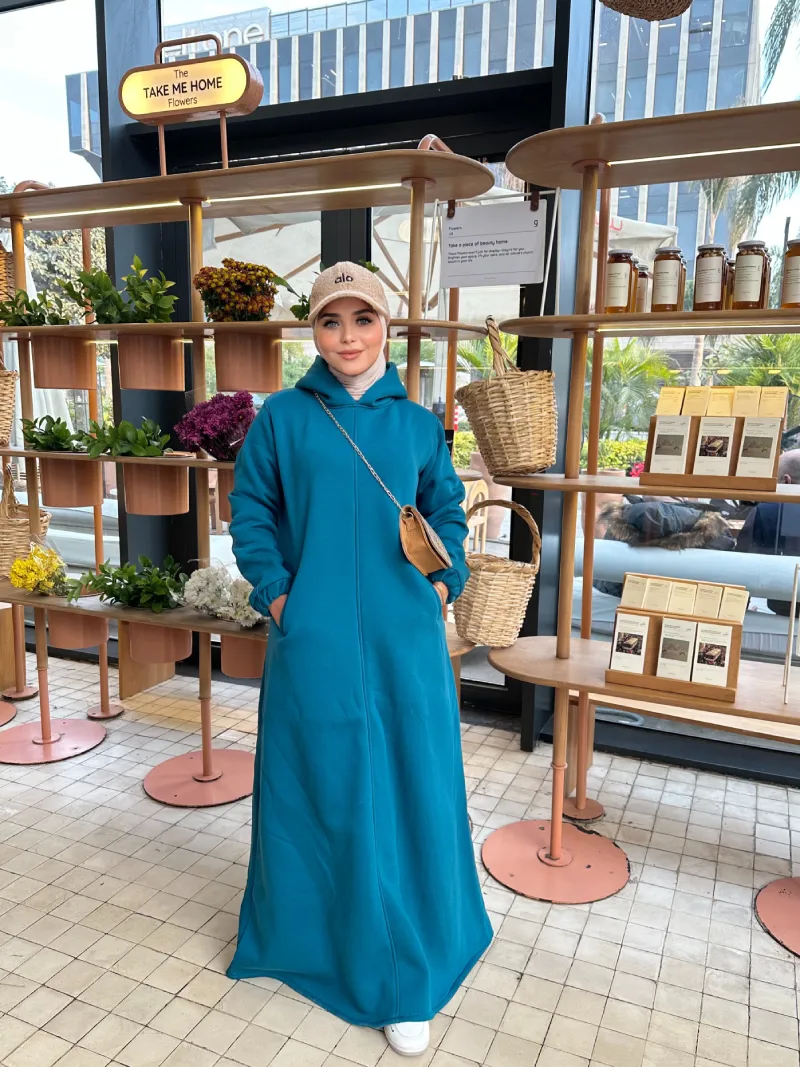 هودي طويل بأكمام طويلة من لافيا فاشون بالوان متنوعة، تصميم عملي ومريح يناسب الإطلالات اليومية والمشاوير السريعة. خامة ثقيلة وناعمة توفر الدفء في الشتاء مع لمسة من الأناقة البسيطة. مزود بجيب أمامي وكابيشو لإطلالة كاجوال محتشمة تناسب المحجبات. متوفر بألوان متعددة تناسب جميع الأذواق.